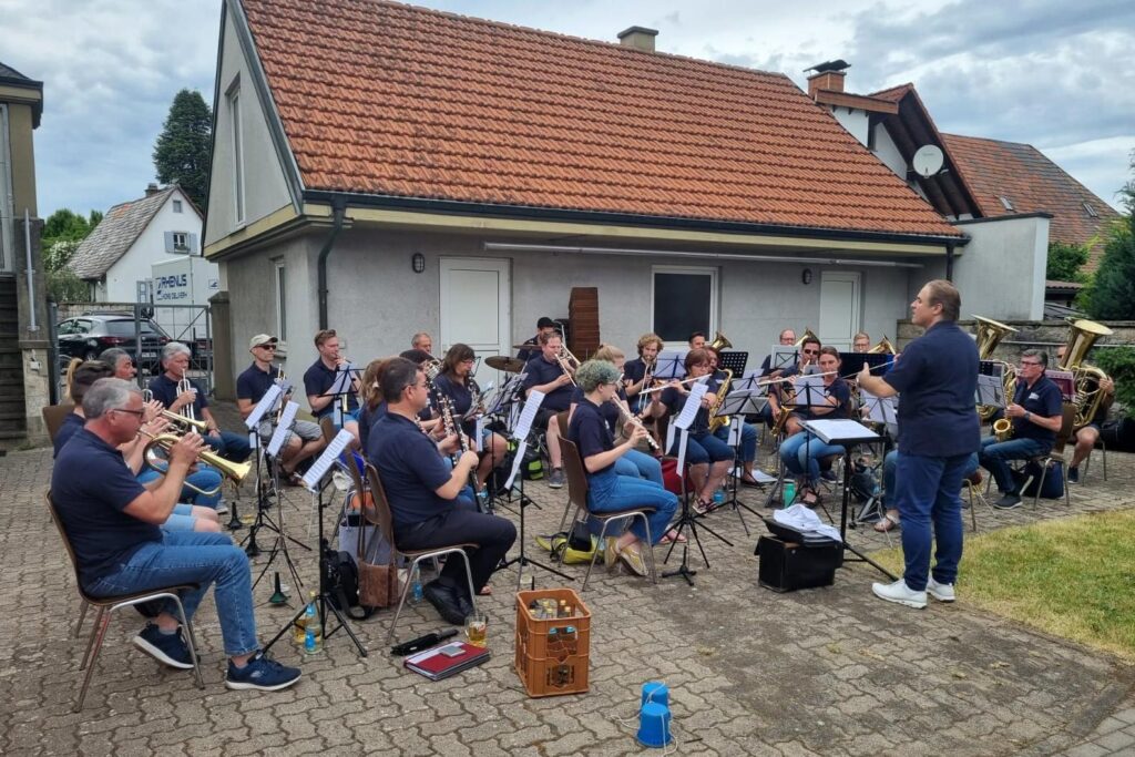 Nach einem späten Mittagessen und einer kurzen Verschnaufpause ging es weiter auf das Pfarrfest in Neuthard. Dieses Mal nahmen wir in Jeans und unserem Vereinspoloshirt im Pfarrgarten Platz und unterhielten das dortige Publikum bei angenehmen Temperaturen die nächsten 1.5 Stunden. Ziemlich müde verließen wir nach diesem langen musikalischen Tag unter donnerndem Applaus unseres Publikums die Bühne.