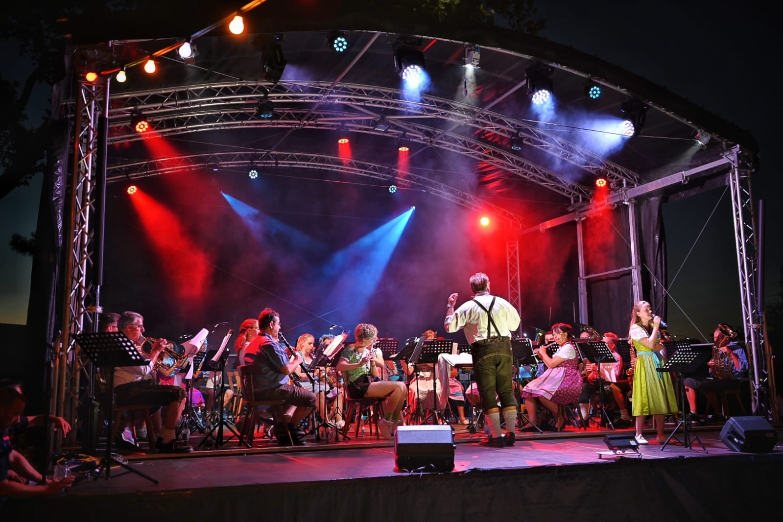 Das 1. Orchester des Musikvereins lieferte am Samstagabend beim MV Wiesengarten eine großartige Performance ab. Unter der Federführung von Martin Bellm in Zusammenarbeit mit Michael Schumacher und Stefan Kistner entstand ein großartiges Schlager- und Show-Abendprogramm. Gewohnt charmant und mit viel Witz führten Martin, Stefan, Michael und Tobias das Publikum durch das abwechslungsreiche Abendprogramm. Das 1. Orchester begleitete in vielfältiger musikalischer Weise unsere großartige Sänger Linda, Stefan, Martin, Walter, Matthias, Markus und Andreas. Es wurden unter anderem auch keine Kosten und Mühen gescheut, um die Backstreet-Boys in Form der Big 5 wiederauferstehen zu lassen.