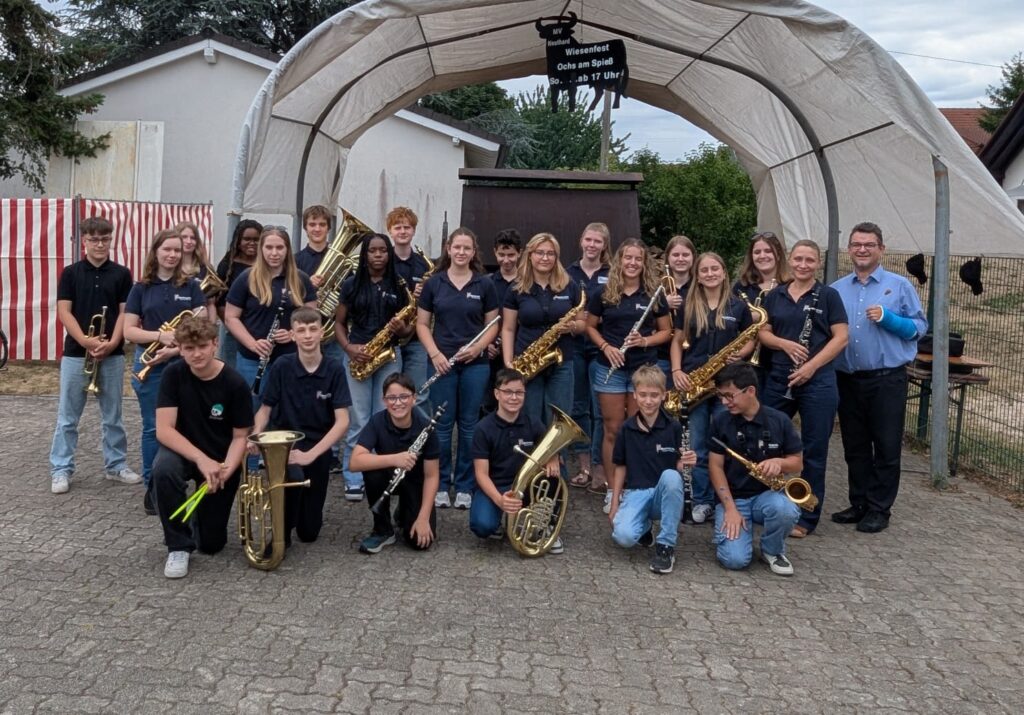 Im Anschluss eroberte das Jugendorchester die Bühne unter der Stabführung von Markus Heneka und verzauberte das Festpublikum nahezu eine Stunde lang mit unterhaltsamen Musikstücken wie beispielsweise „A Wonderful World“ von Louis Armstrong zum Mittagessen. Zum Abschluss brachte das Orchester „A Million Dreams“ zu Gehör. Der darauffolgende Applaus war so enorm, dass als Zugabe nochmals „Seven Nation Army“ gespielt wurde.