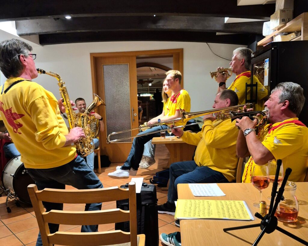 Am Samstag, den 25.10., trafen sich Mitglieder und Freunde der NFD vor dem Haus der Musik, um die Faschingszeit mit dem traditionellen NFD-Ausflug einzuläuten. Dieses Jahr fuhren wir mit dem Bus nach Malsch und kehrten in der Reblaus ein. Nach dem Essen und dem einen oder anderen „Verdauerle“ holten Jung und Alt ihre Instrumente hervor und gaben ein paar altbekannte Lieder zum Besten. Somit verging die Zeit wie im Fluge und wir traten bald wieder die Heimreise an.
